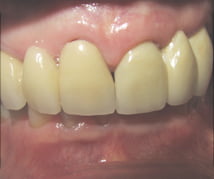 This gentleman was delighted with his ceramic bridge which filled the gap in his smile but also vastly improved the cosmetic appearance of his front teeth.