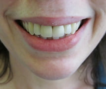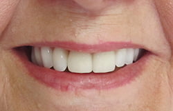 This lady was unhappy with the gap on her top right. An all ceramic bridge filled the space very naturally and she was delighted.