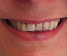 This lady was unhappy with her worn and discoloured front teeth. With direct bonding and new all-ceramic crowns, her smile was transformed!